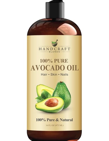 Avocado oil is a nutrient-rich oil that provides deep hydration and nourishment for natural hair. Packed with vitamins A, D, E, and fatty acids, it helps strengthen strands, reduce breakage, and promote healthy hair growth. Its lightweight texture allows it to penetrate the hair shaft easily, leaving curls and coils soft, shiny, and more resilient. Regular use of avocado oil also helps soothe dry scalp, improve elasticity, and protect hair from environmental damage, making it a staple for maintaining strong and healthy natural hair.